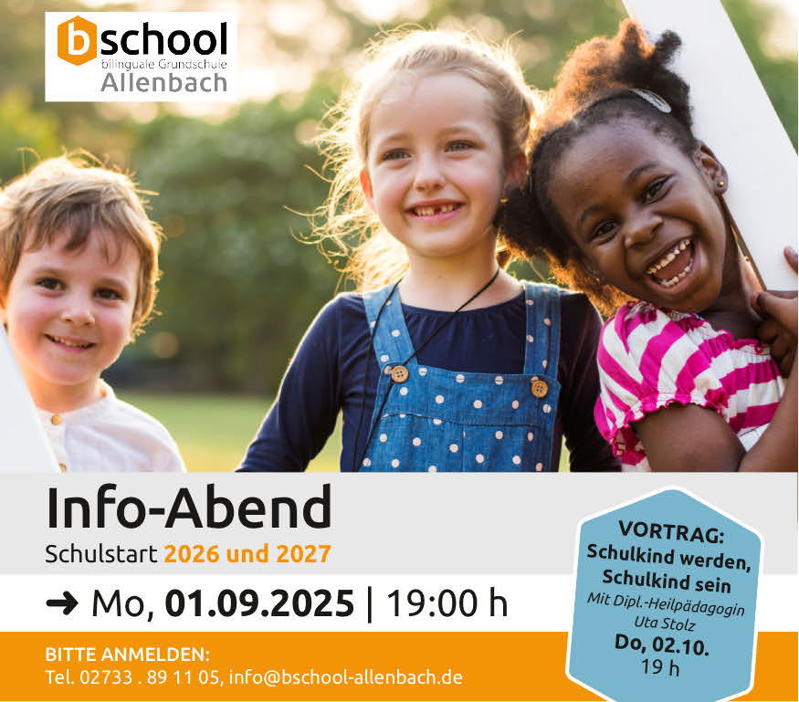 wenn Sie Interesse an einer Einschulung Ihres Kindes zum Schuljahr 2026/27 haben, bitten wir Sie, unseren Informationsabend am 01. September 2025 zu besuchen und sich ganz schnell zurückzumelden. Die pädagogische Aufnahme für das Schuljahr findet schon im September 2025 statt.